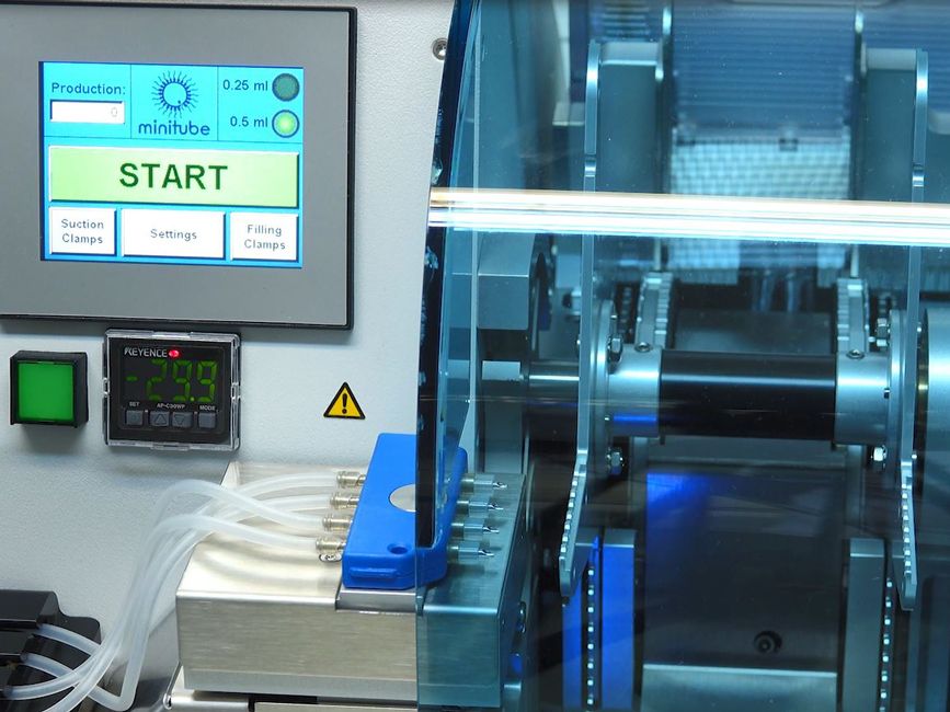 MPP Quattro灌装机和封口机、MiniJet打印机结合的强力组合,保证了完美的全自动精液处理流程:在一个系统里一站式完成0.5毫升和0.25毫升细管的灌装、封口和打印。