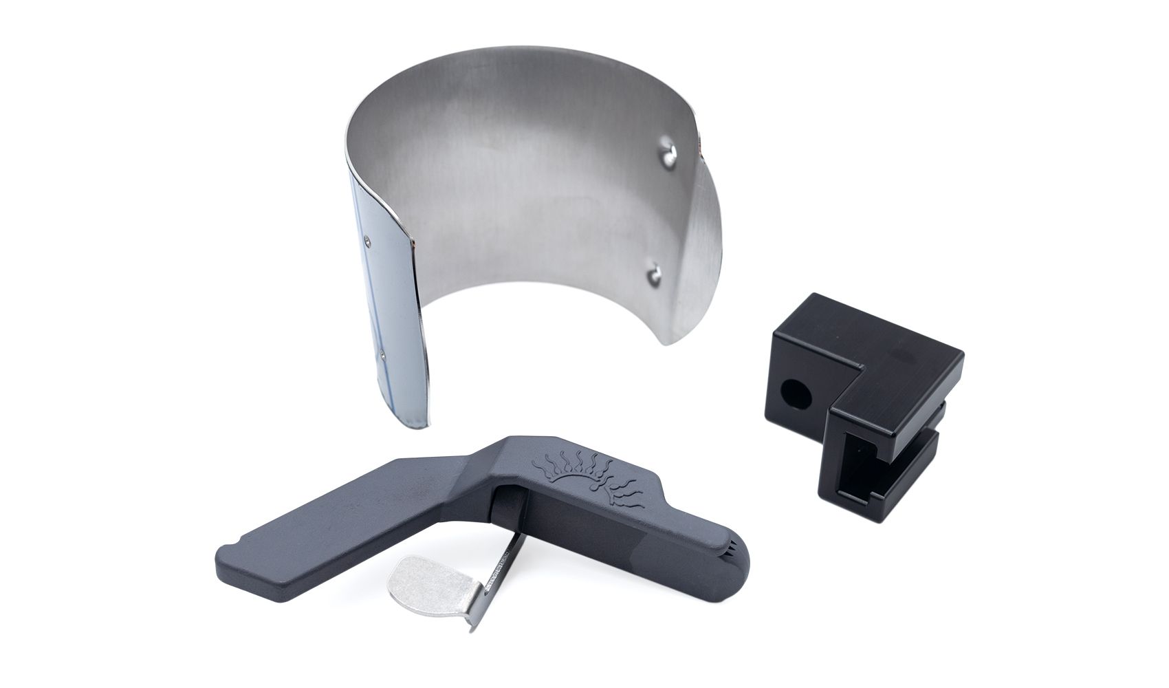 The accessory kit includes the specific AC clamp, the clamp holder, and the cup holder for left side use of the BoarMatic.