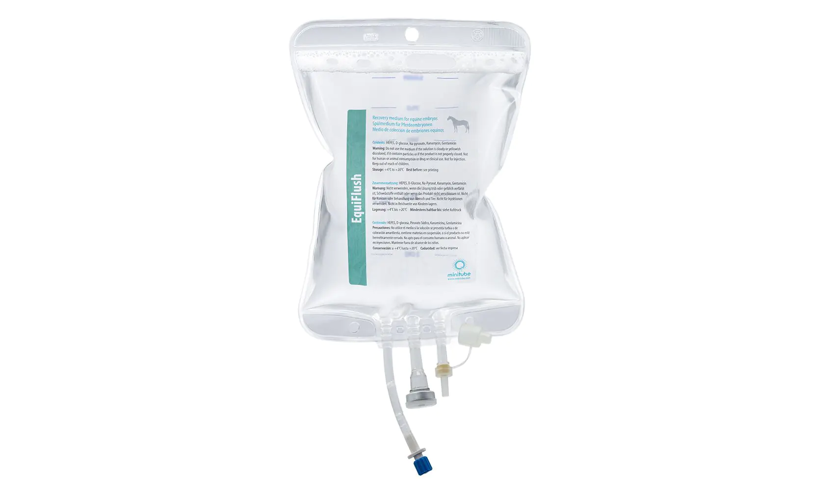 Medio listo para usar para la recuperación de embriones equinos. Contiene BSA o PVA y antibióticos.