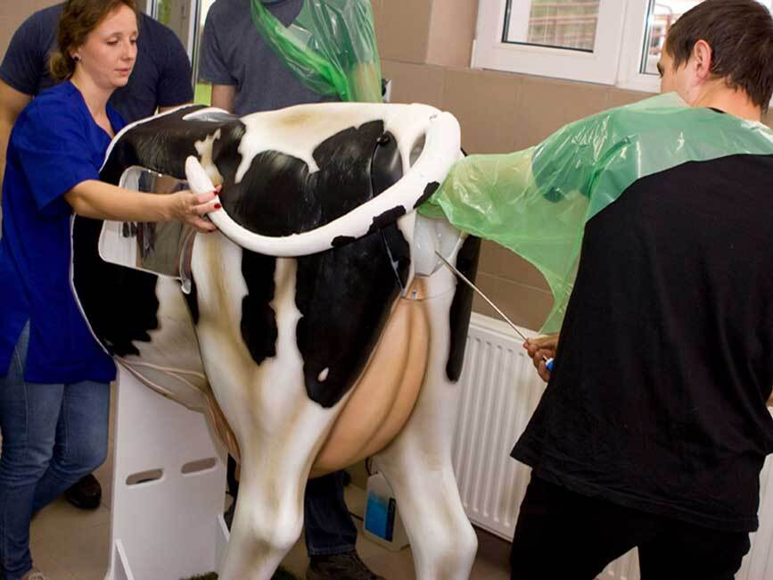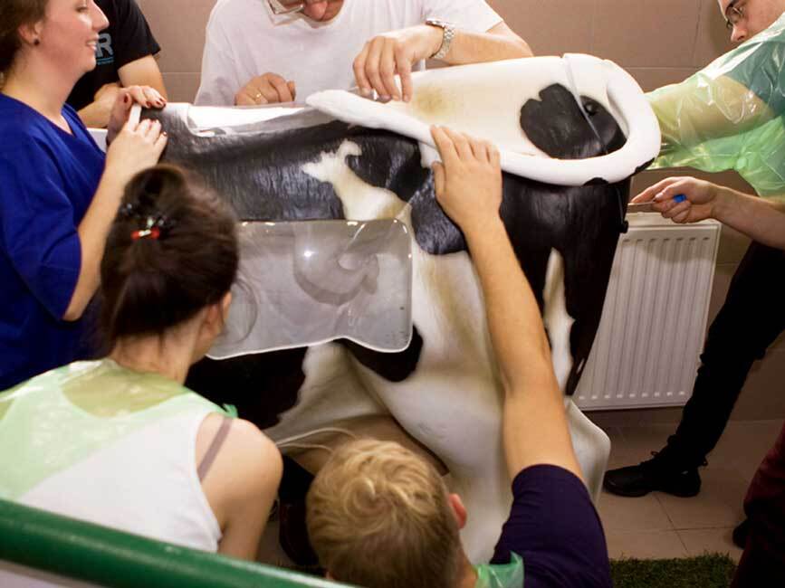 There are two parts during a course: the first part is a theoretical element on anatomy and physiology of the reproductive system in cows, on artificial insemination equipment and semen handling. Within the second part, it is practice time with the real reproductive tract and then the training model itself. Work with “Henryetta” shows students how hard is manipulate your hand when you cannot see it, trying to put the insemination gun inside the uterus. Trainers can support them in this because they see everything from the other side. Imitation of a pneumorectum in the training cow is also very helpful for trainees to understand the balloon effect in a real cow.